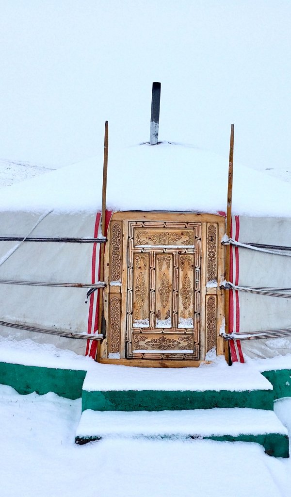Wallpaper: Mongolia, tent, winter - 600x1024