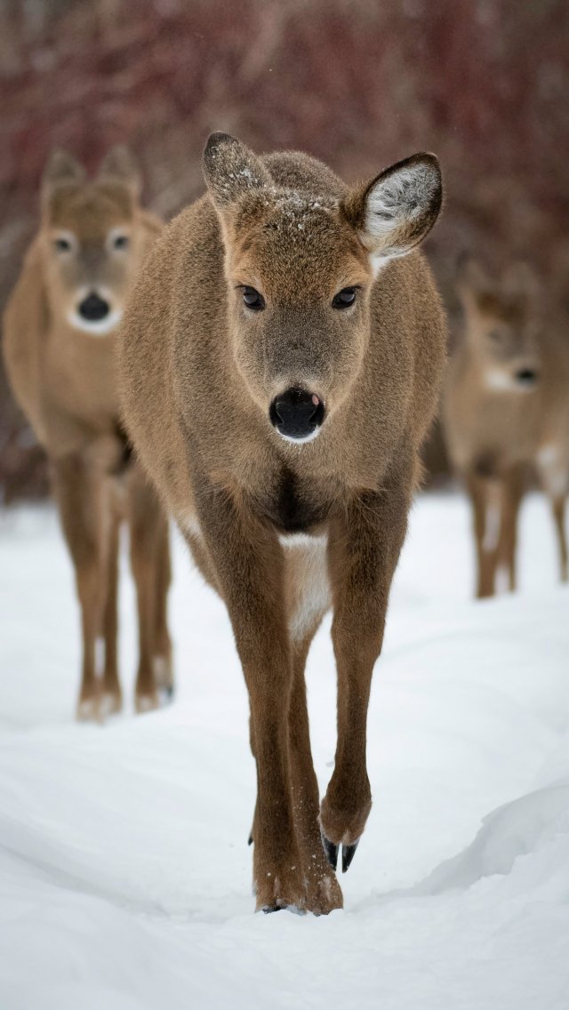 Wallpaper: deer, forest, winter - 640x1136