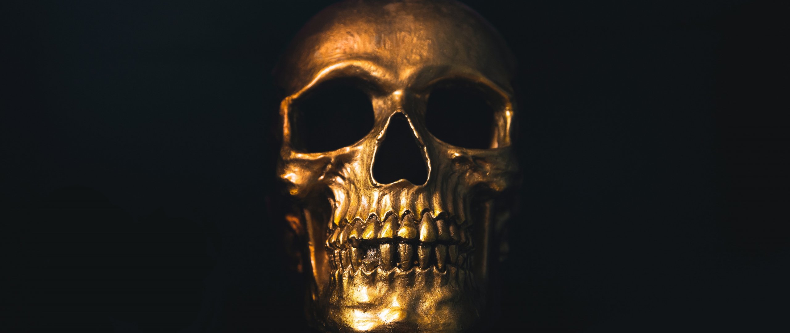 Wallpaper: golden skull, black wallpaper - 2560x1080
