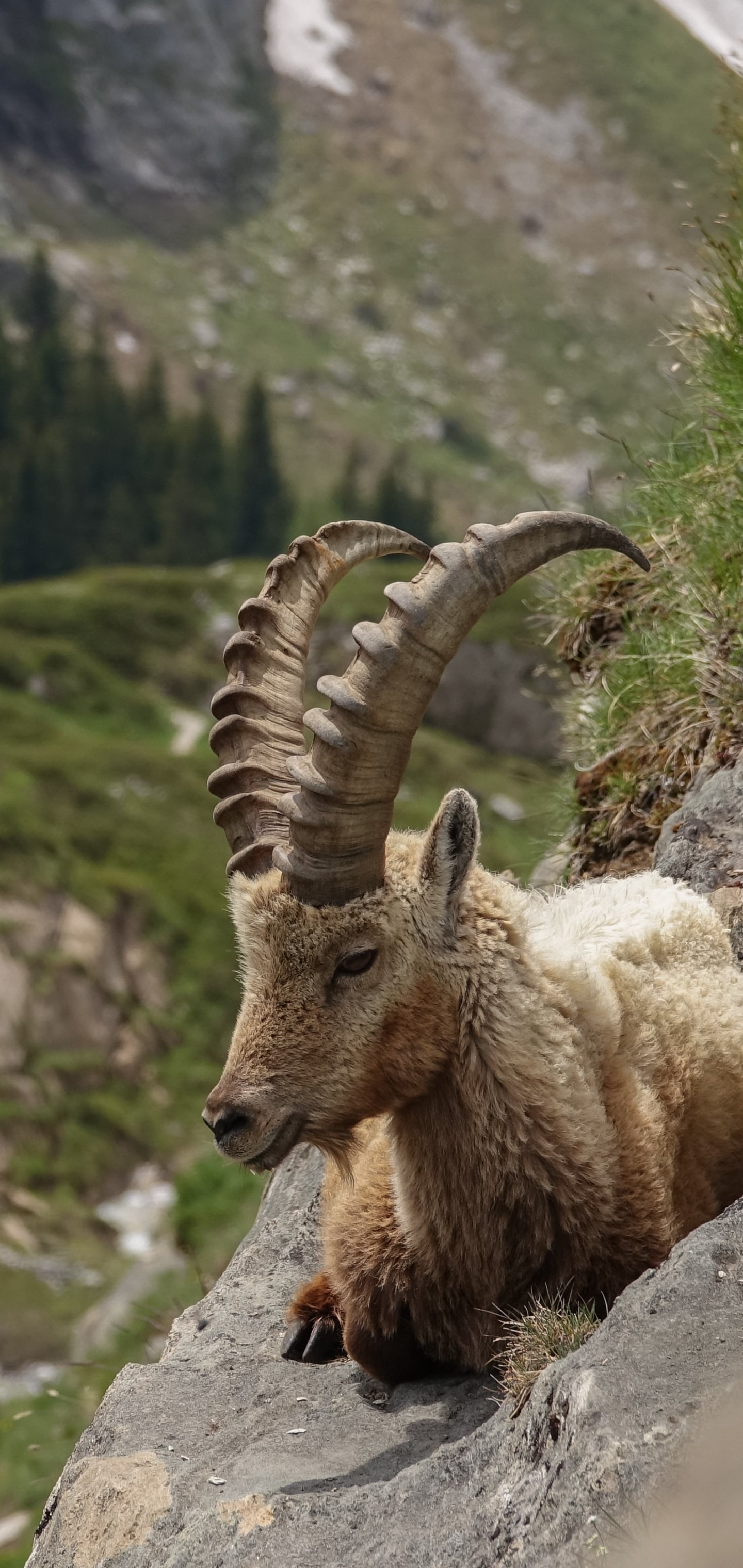 Wallpaper: wild goat, scale, cliff, height - 1440x3040