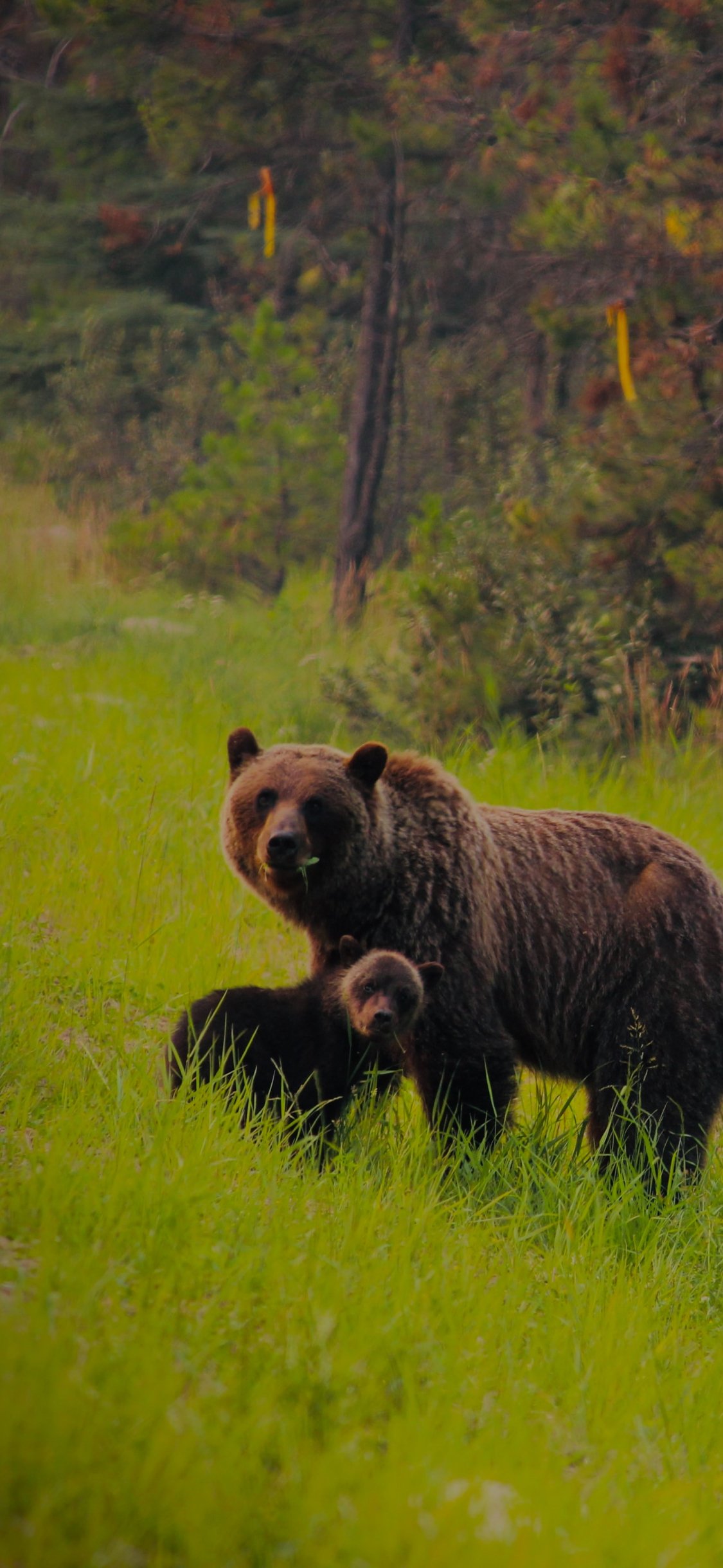 Wallpaper: wild forest, she-bear with cubs - 1125x2436