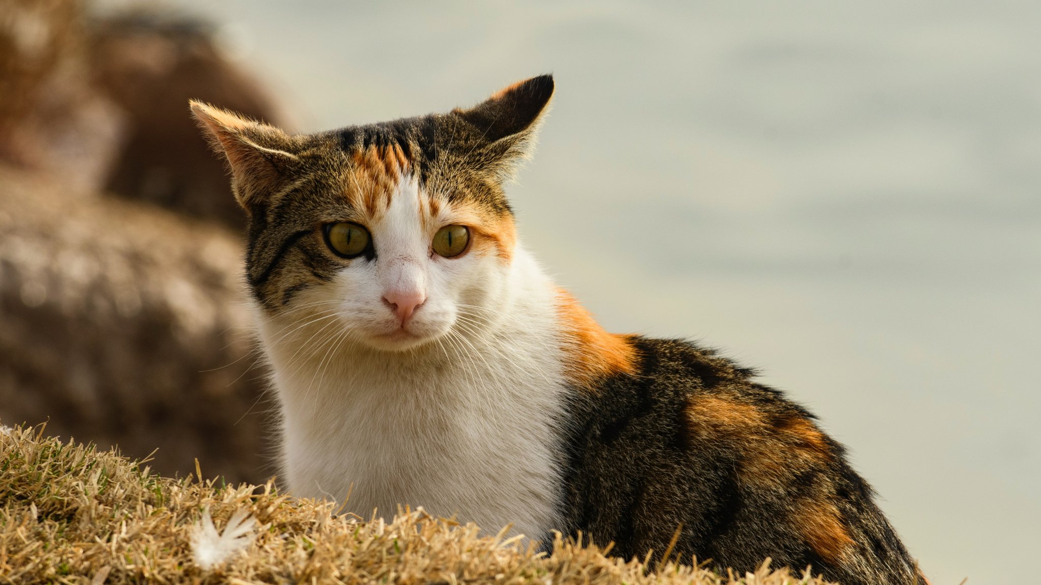 Wallpaper: domestic cat, pet, yellow eyes - 2048x1152