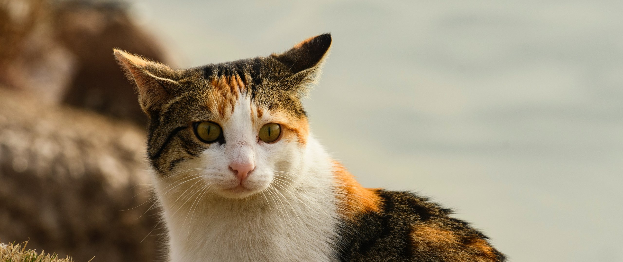 Wallpaper: domestic cat, pet, yellow eyes - 2560x1080