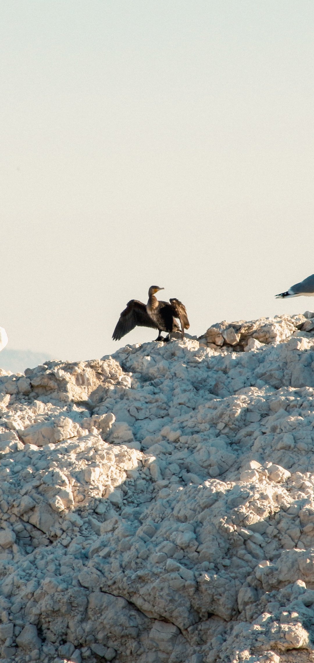Wallpaper: birds, seagulls, rocks, mountain range - 1080x2280