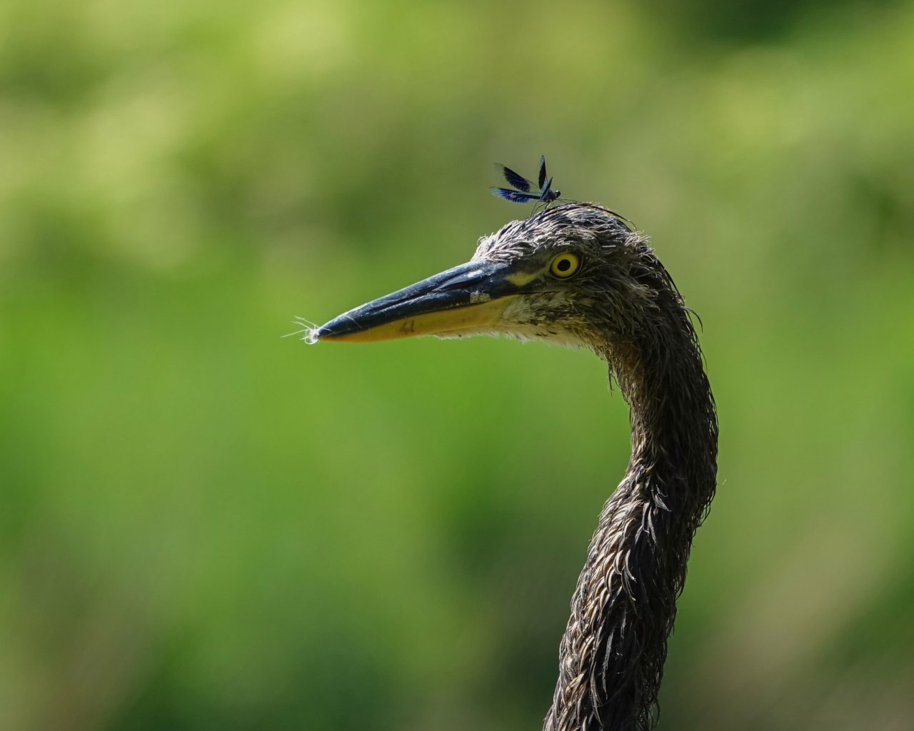 Wallpaper: bird, yellow eyes, insect - 1280x1024