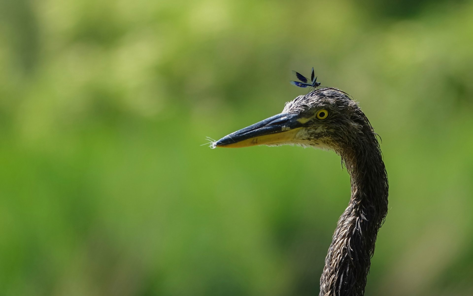 Wallpaper: bird, yellow eyes, insect - 1920x1200