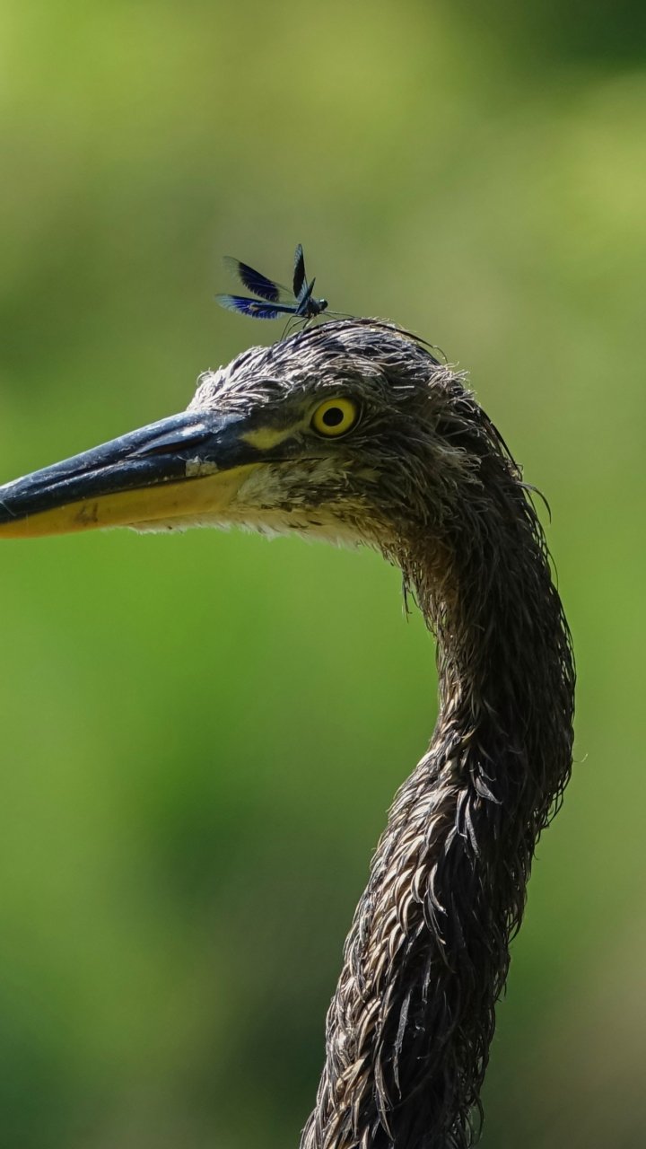 Wallpaper: bird, yellow eyes, insect - 720x1280