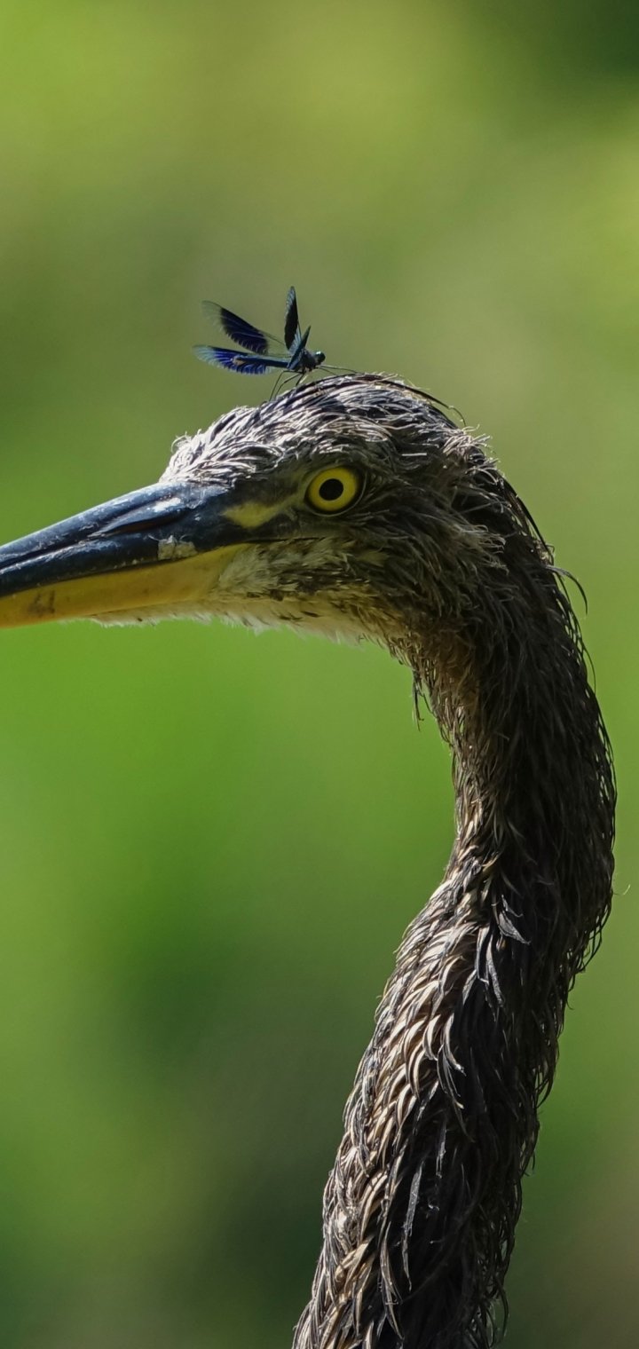Wallpaper: bird, yellow eyes, insect - 720x1520