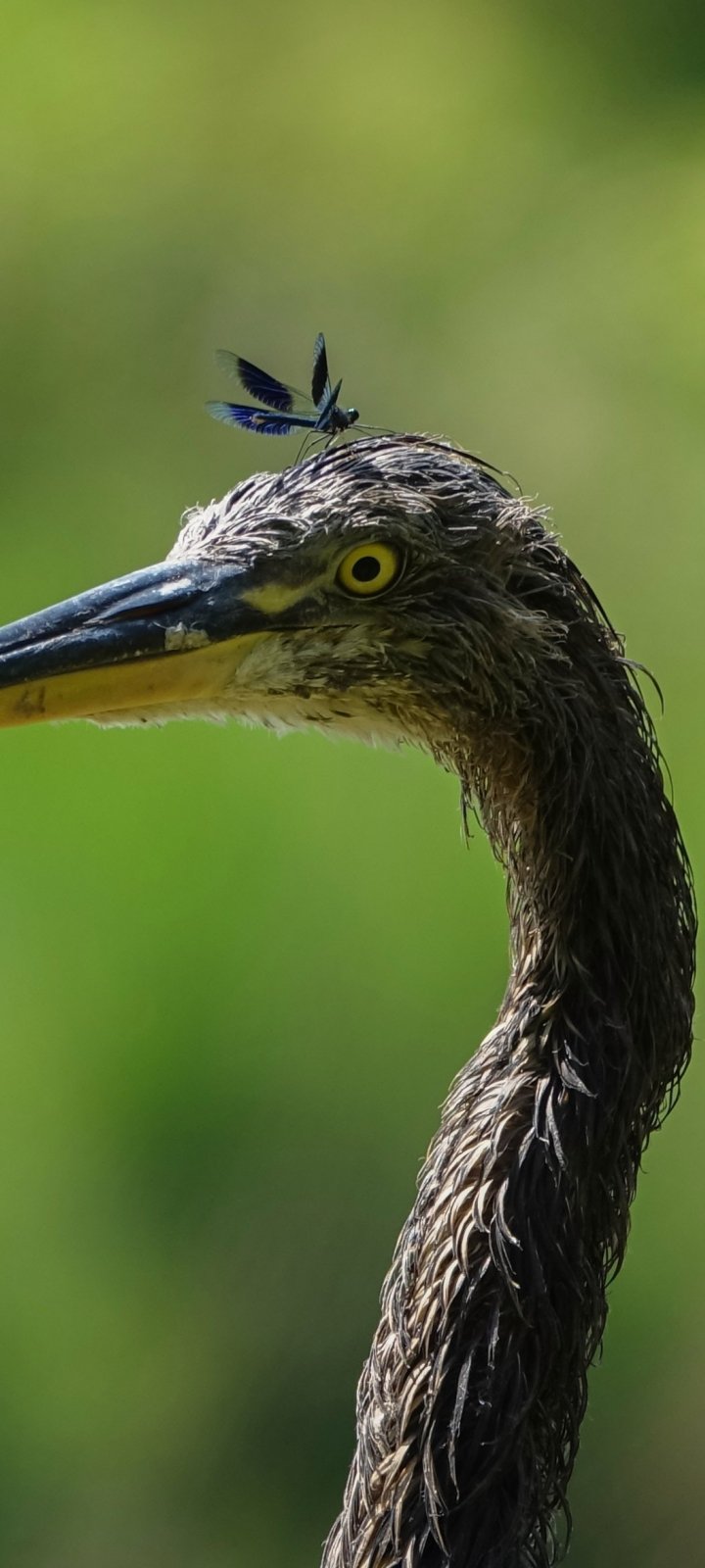 Wallpaper: bird, yellow eyes, insect - 720x1600