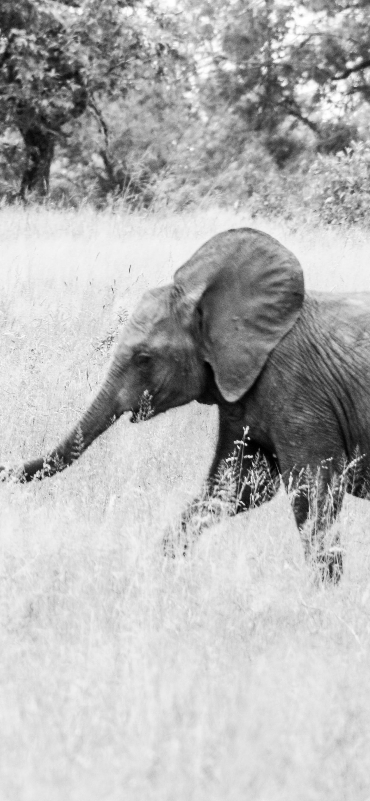 Wallpaper: elephant, African animal, black and white photo - 1242x2688