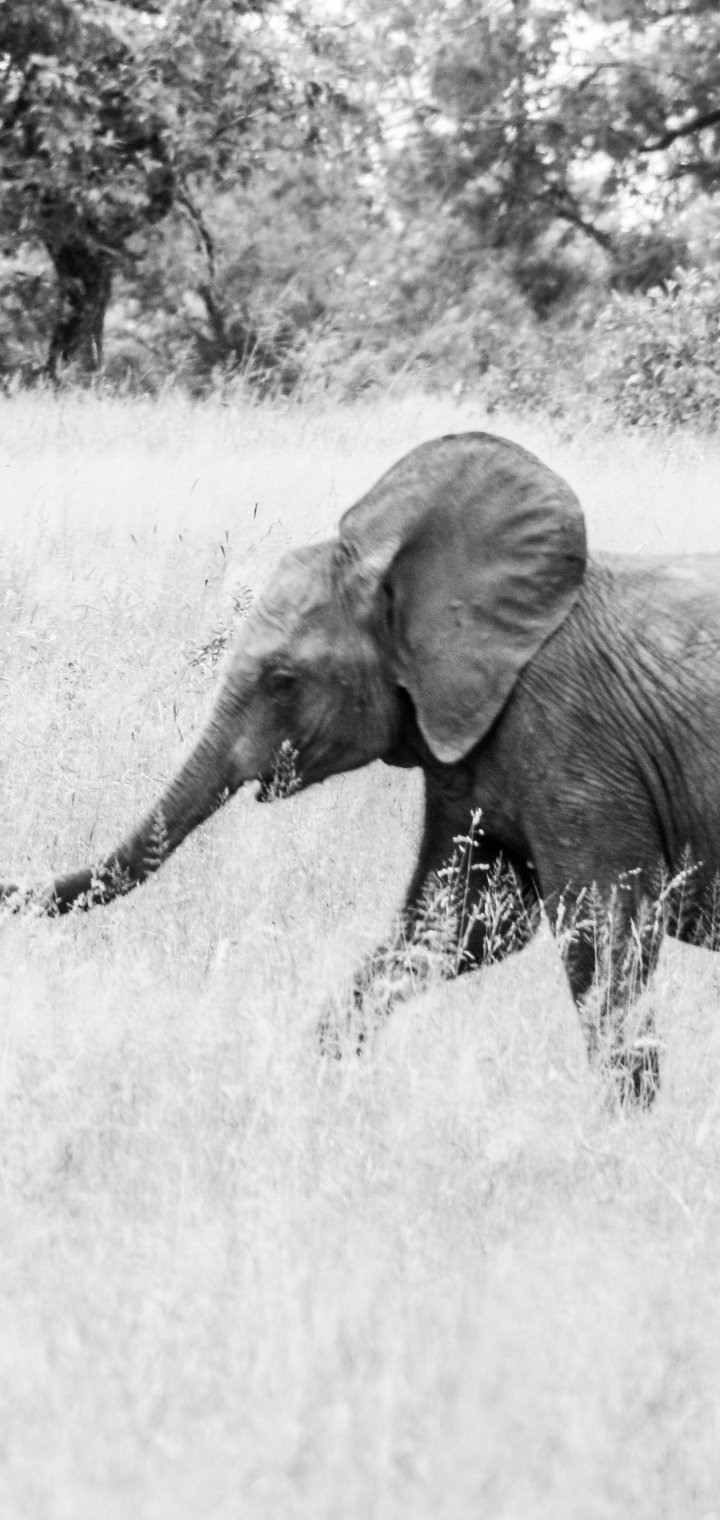 Wallpaper: elephant, African animal, black and white photo - 720x1520