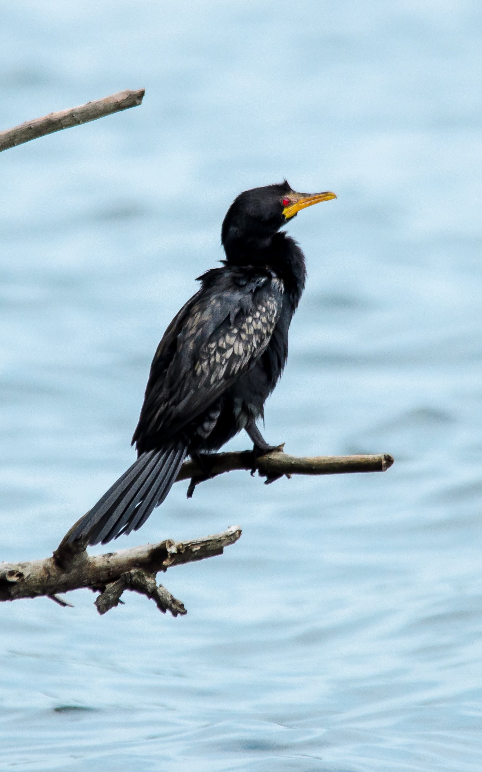 Wallpaper: lake, black bird, red eyes - 1600x2560