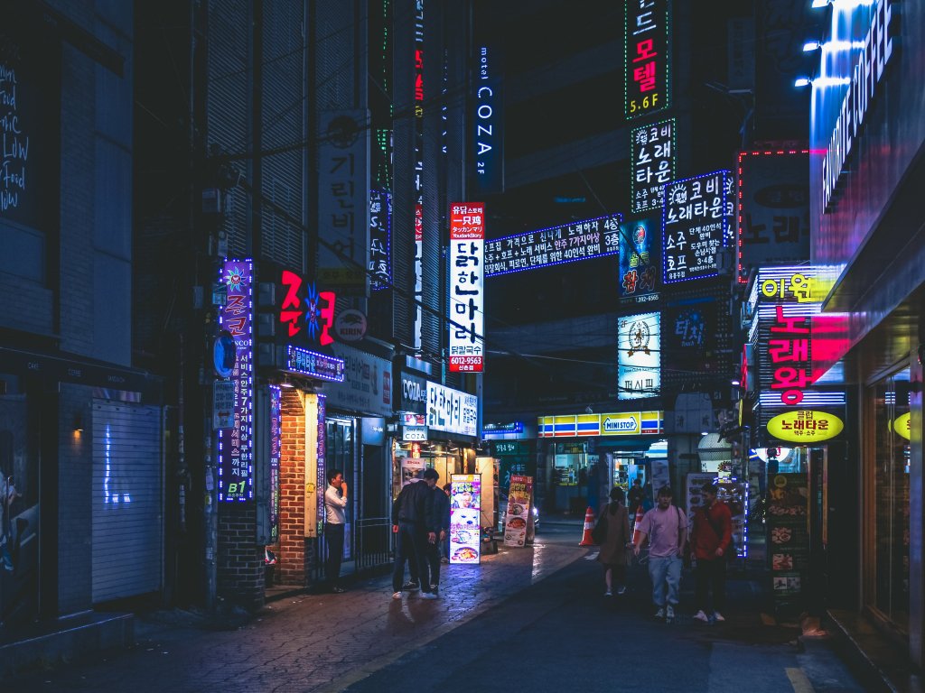 Wallpaper: Seoul, South Korea, neon, night city, urban landscape - 1024x768