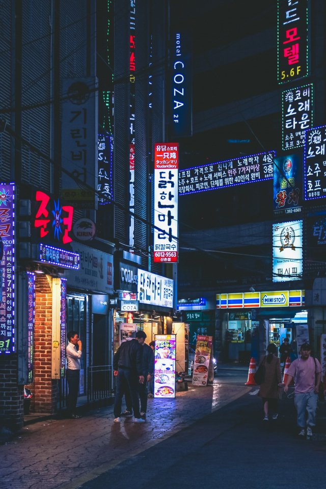 Wallpaper: Seoul, South Korea, neon, night city, urban landscape - 640x960