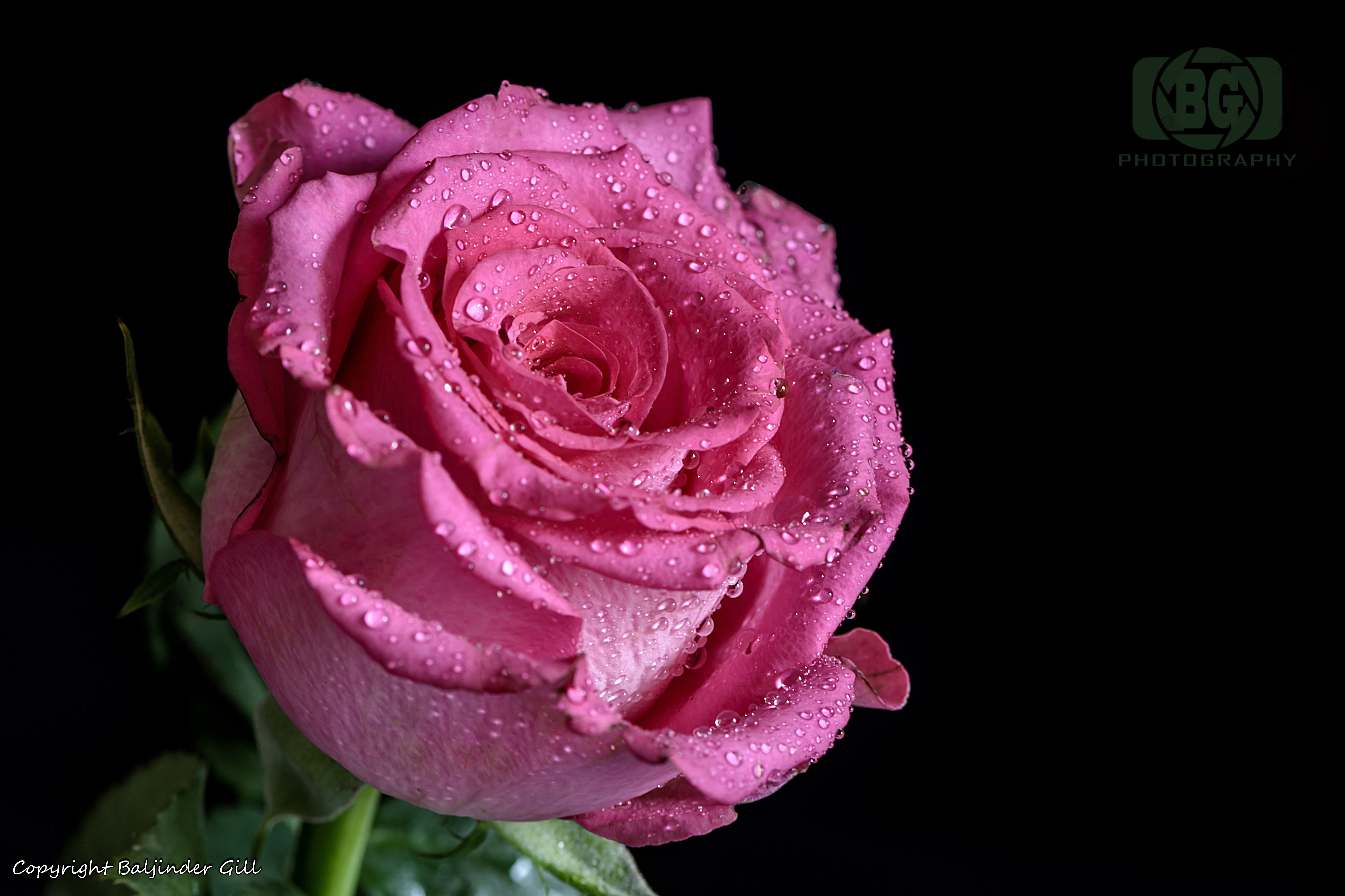 Wallpaper: pink rose, rose on black background - 5531x3687