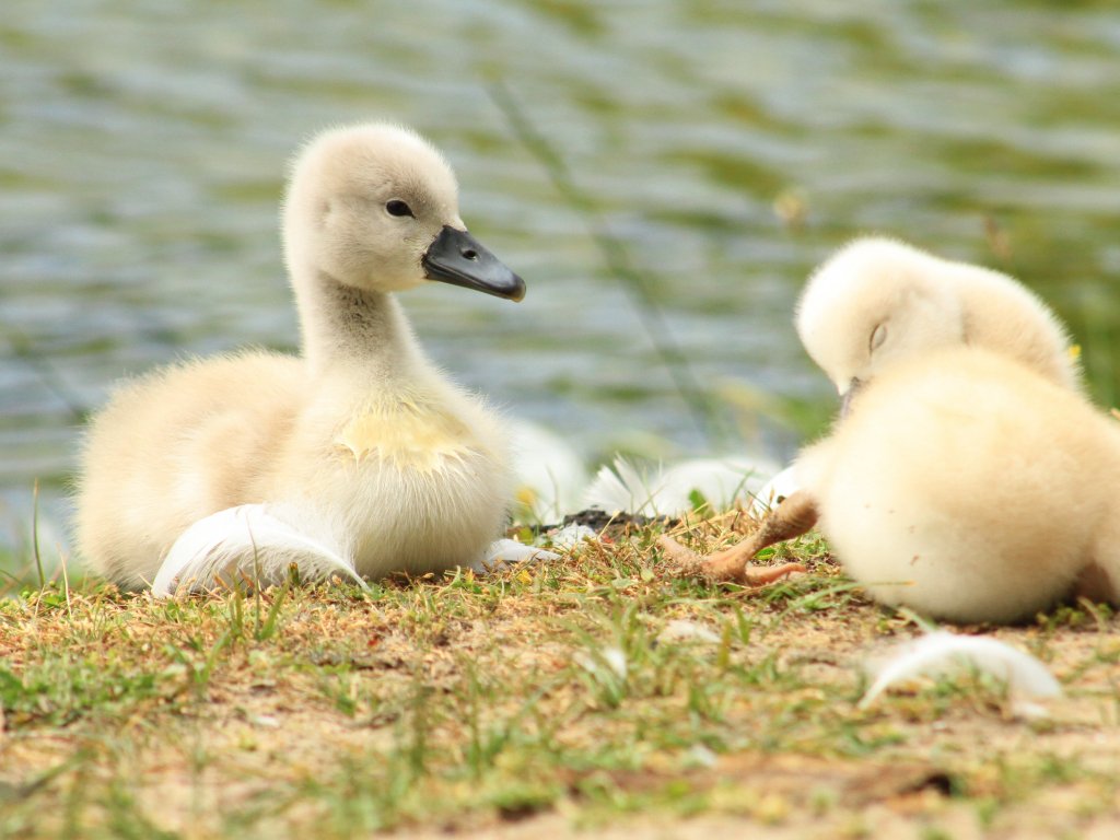 Wallpaper: chicks, ducklings, swans - 1024x768
