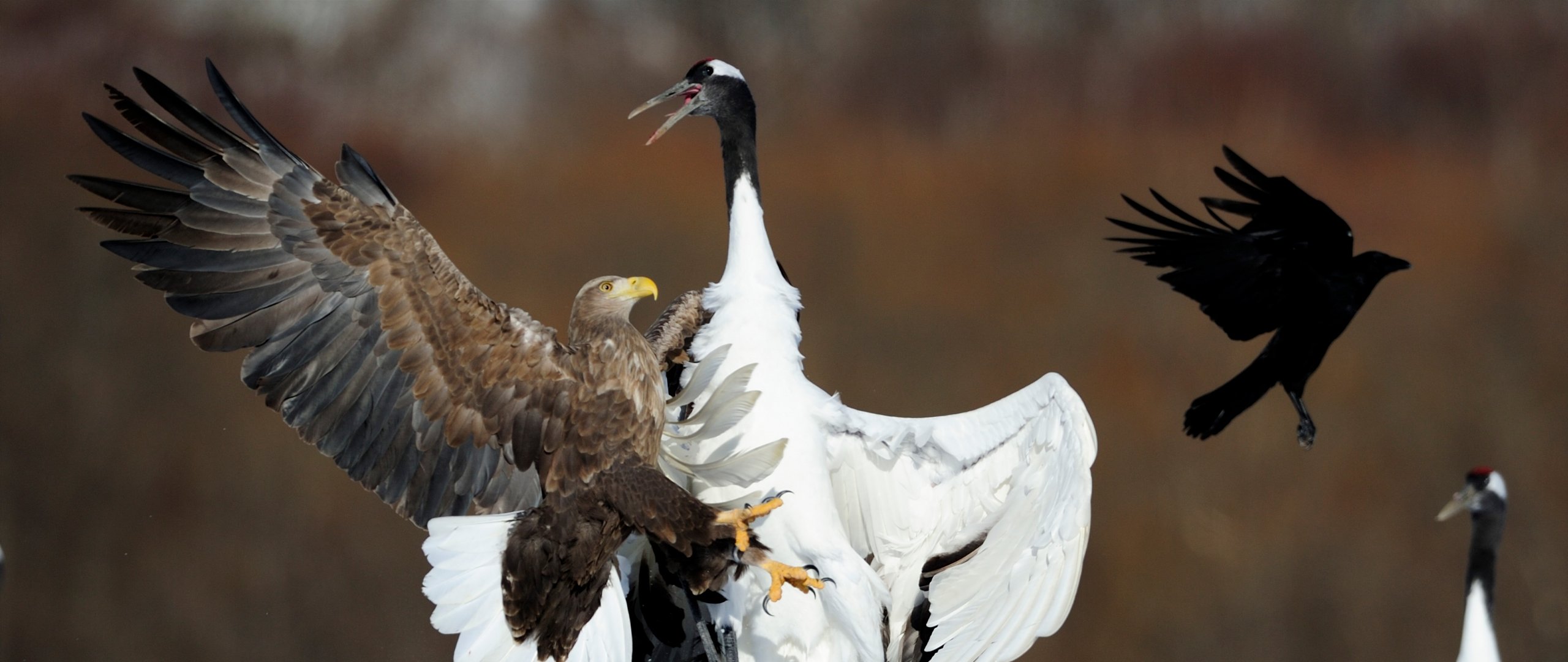 Wallpaper: Cree Moore, Japan, bald eagle, crane - 2560x1080