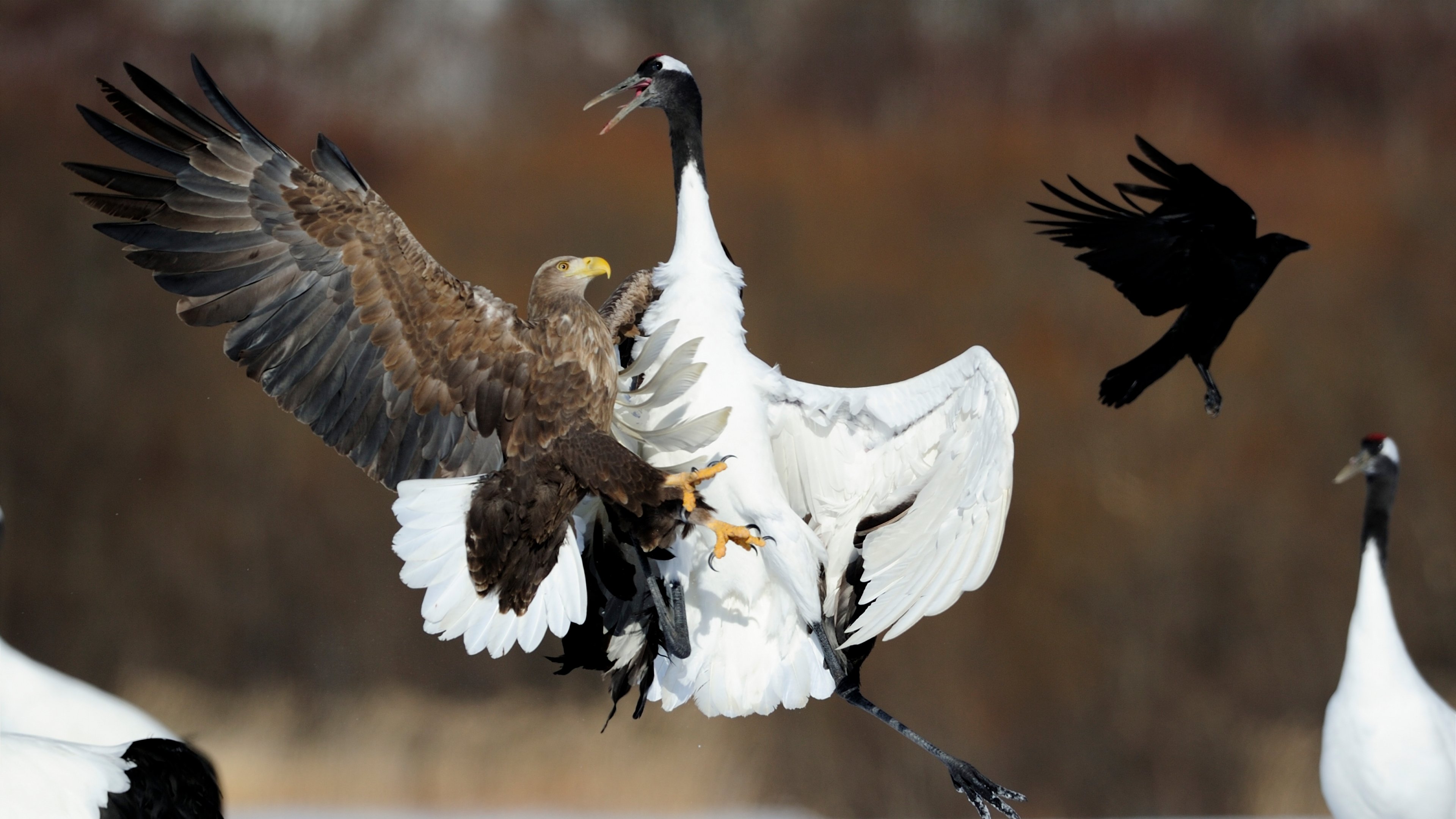 Wallpaper: Cree Moore, Japan, bald eagle, crane - 3840x2160