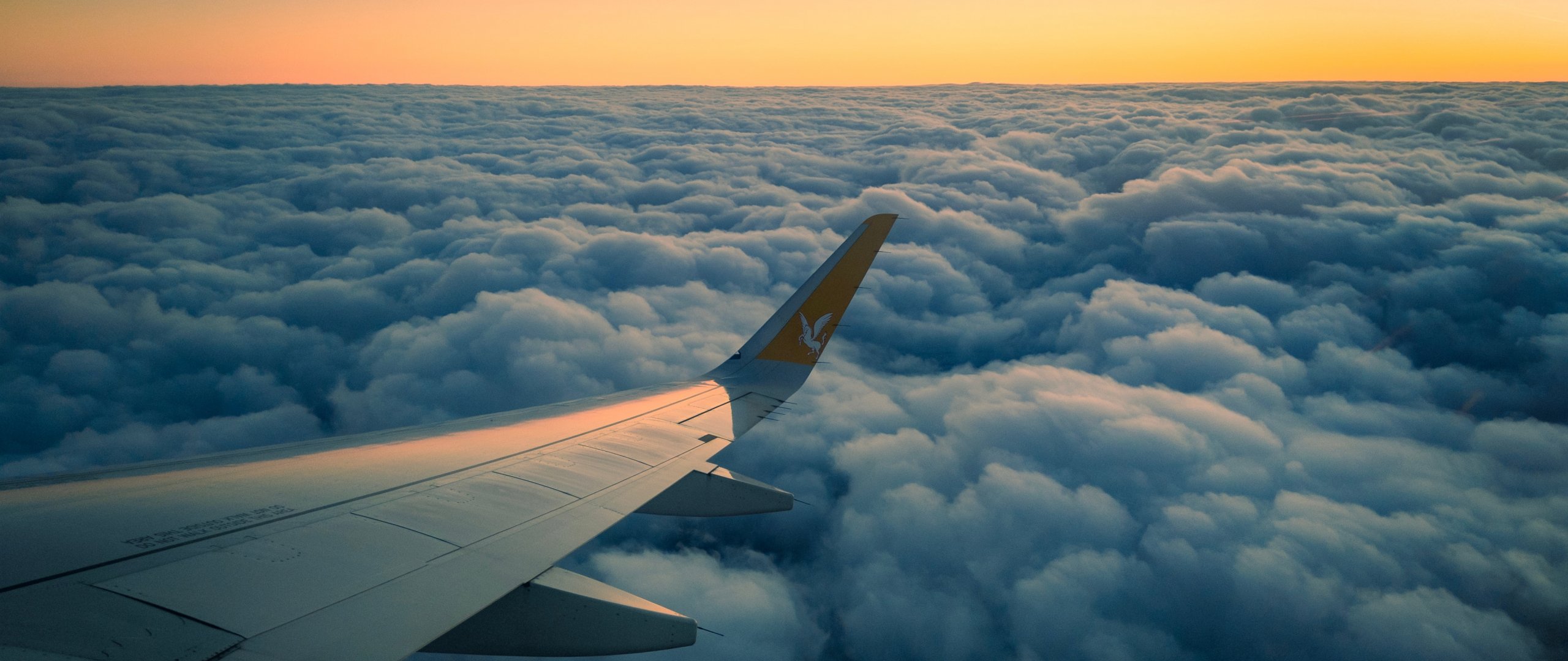 Wallpaper: Ramadan, airplane wing, above the clouds - 2560x1080