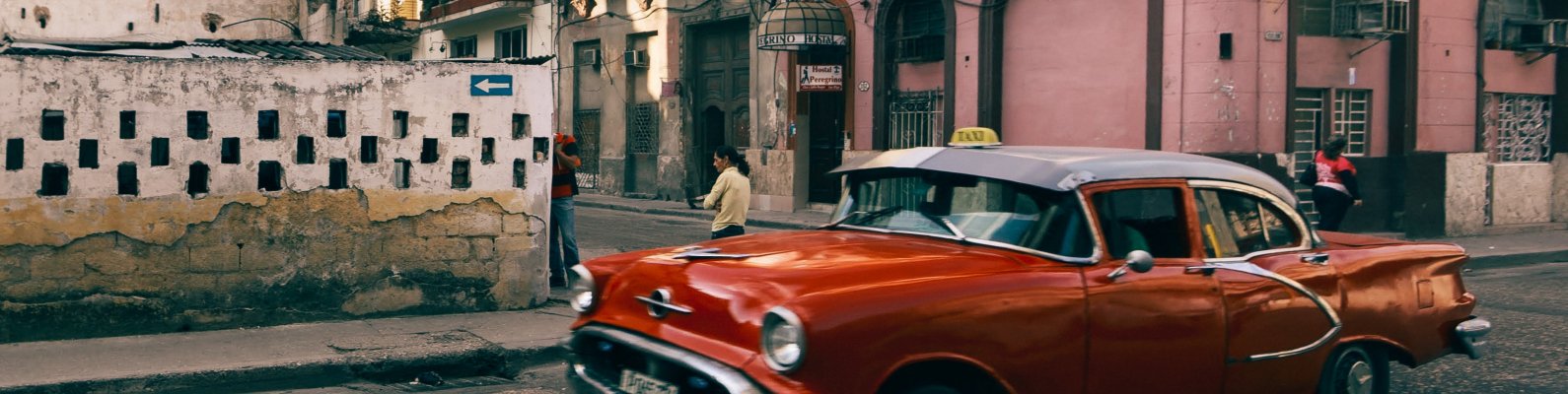 Wallpaper: city, city photo, retro car - 1590x400
