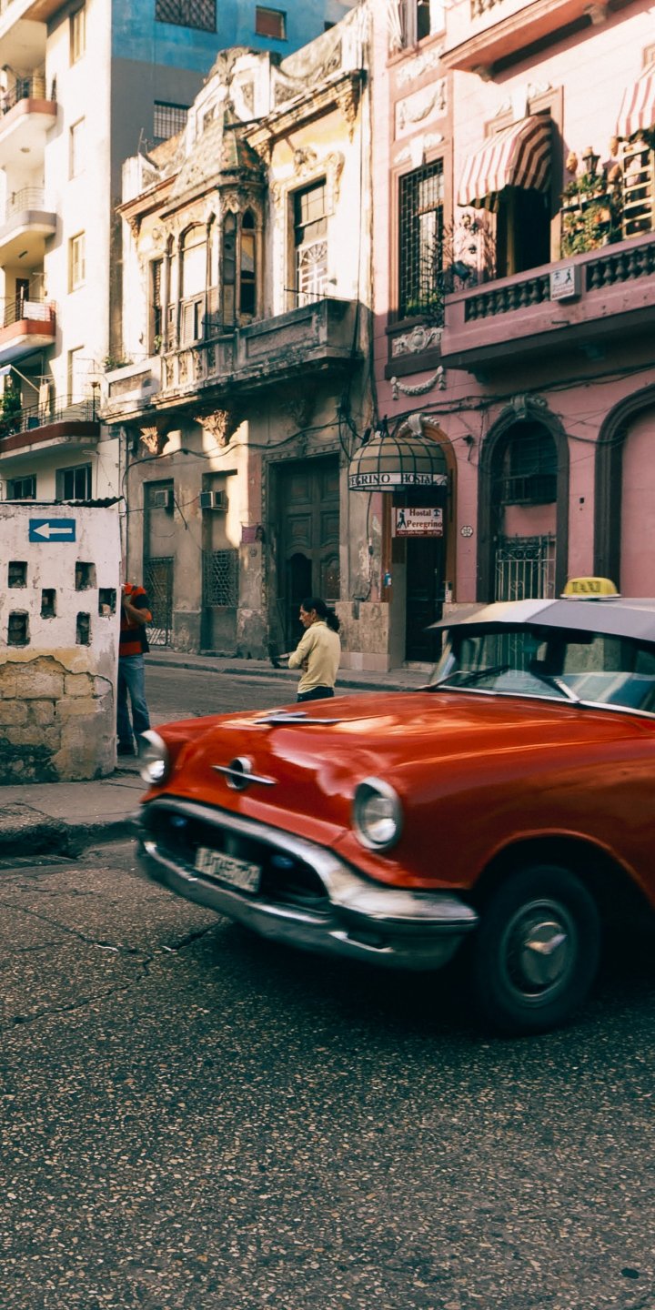 Wallpaper: city, city photo, retro car - 720x1440