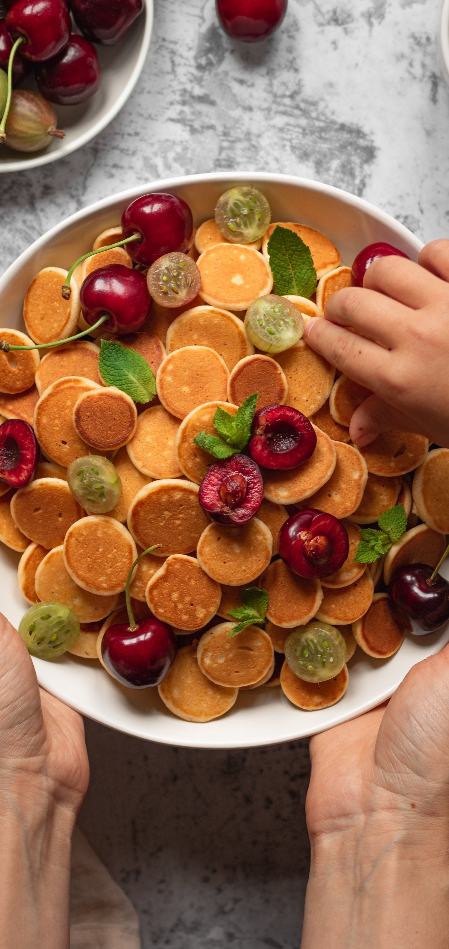 Wallpaper: breakfast, fritters, fruit - 1440x3040