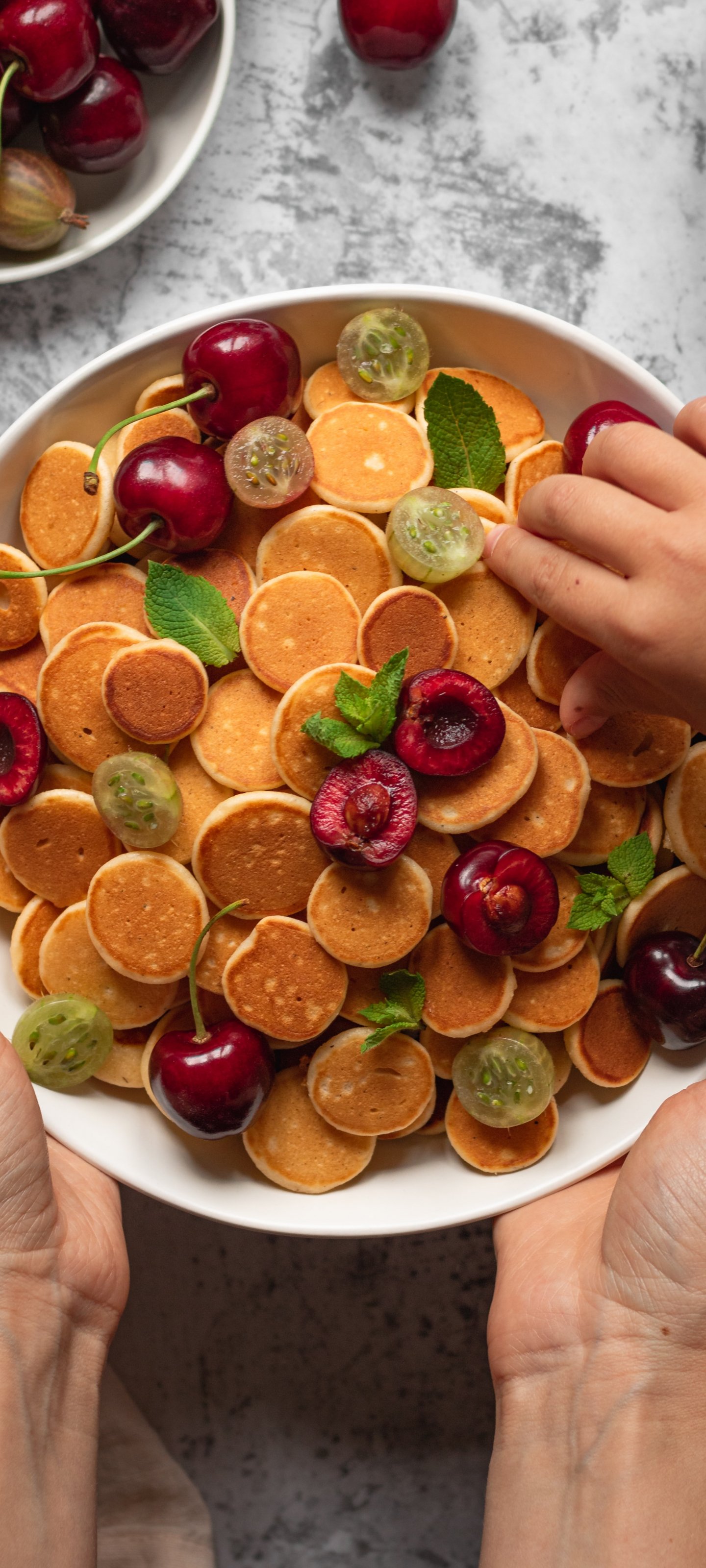 Wallpaper: breakfast, fritters, fruit - 1440x3200