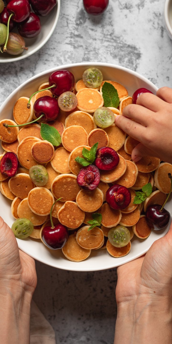 Wallpaper: breakfast, fritters, fruit - 720x1440