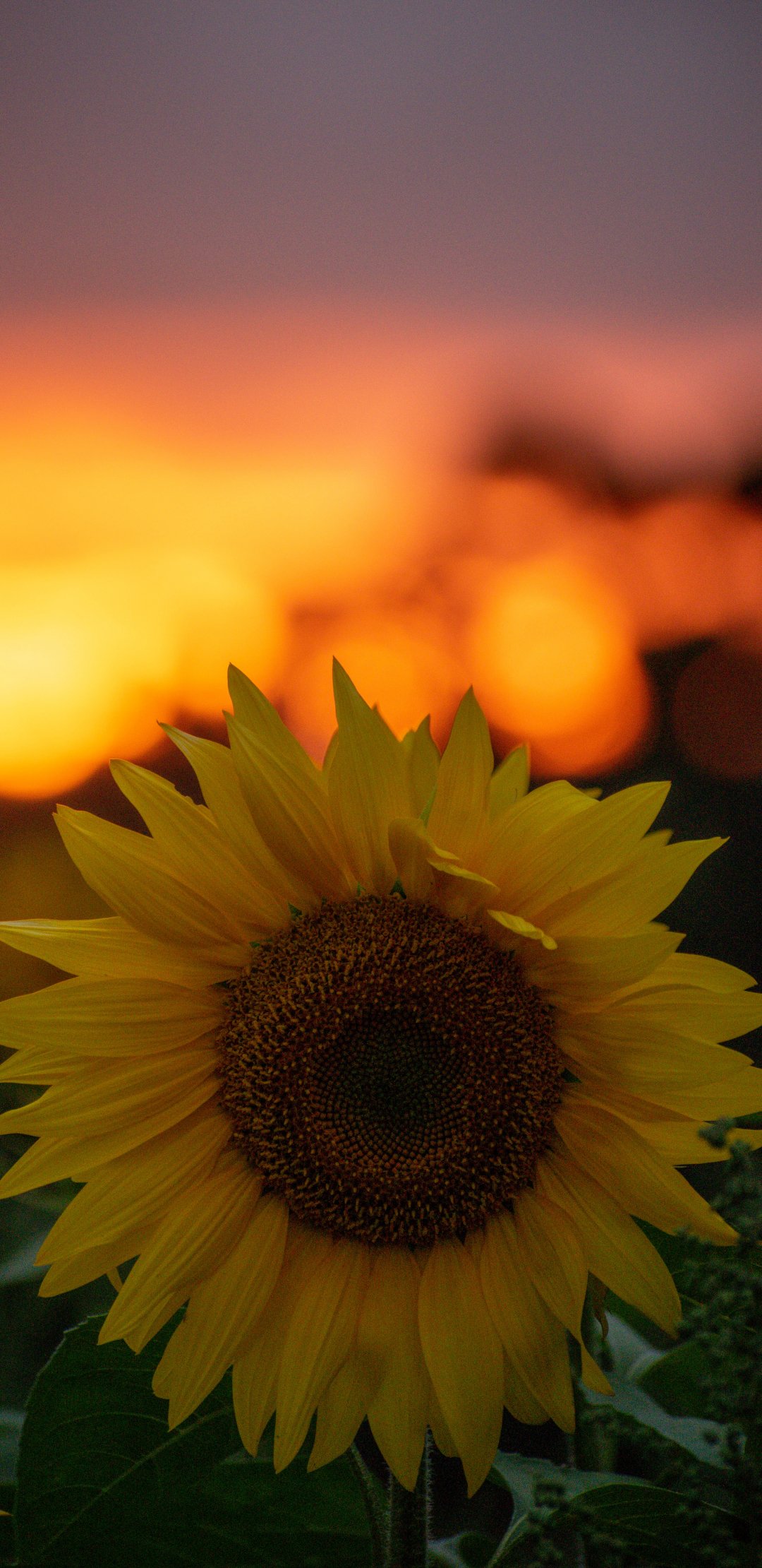 Wallpaper: sunflower, sunset, dawn - 1080x2220