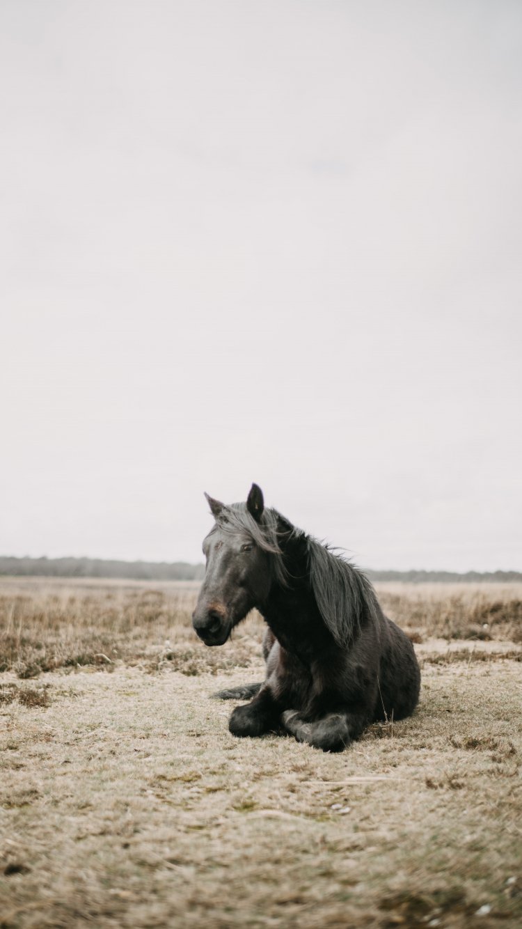 Wallpaper: horse, black, steppe - 750x1334