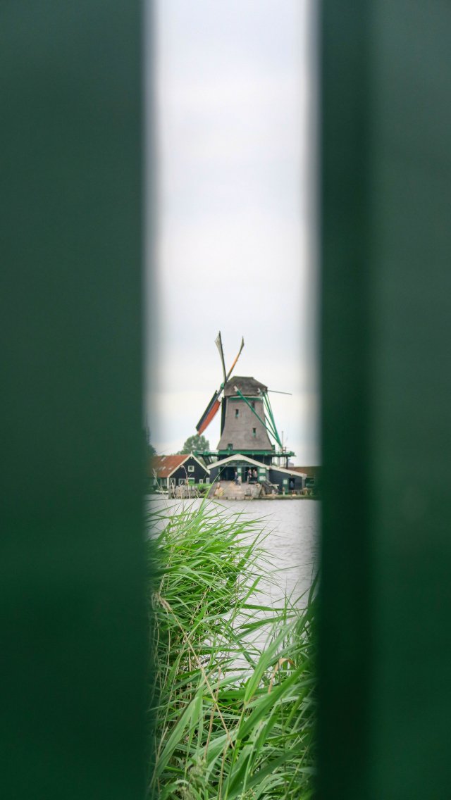 Wallpaper: Zaanse Shans, Zandam, The Netherlands, windmill in the distance - 640x1136