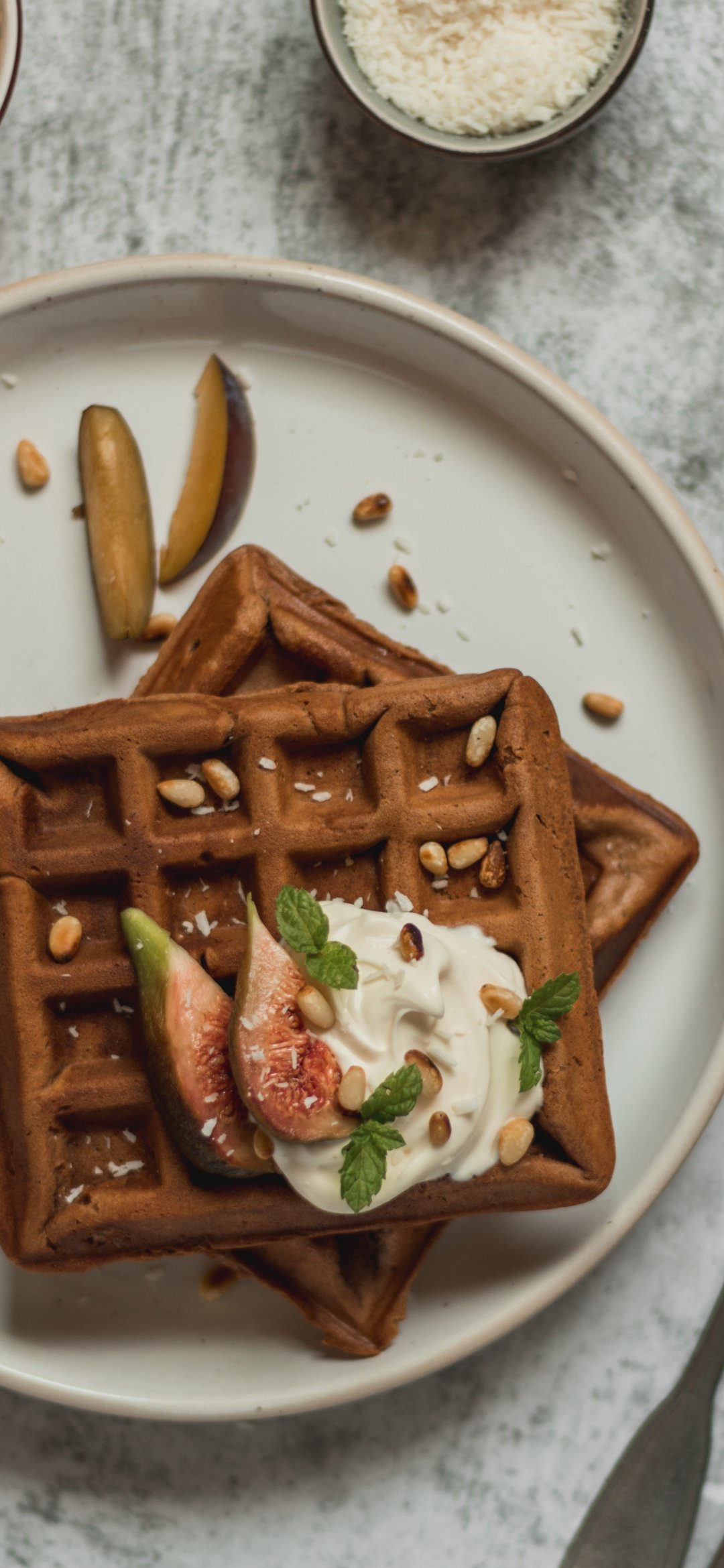 Wallpaper: healthy breakfast, waffles - 1080x2340