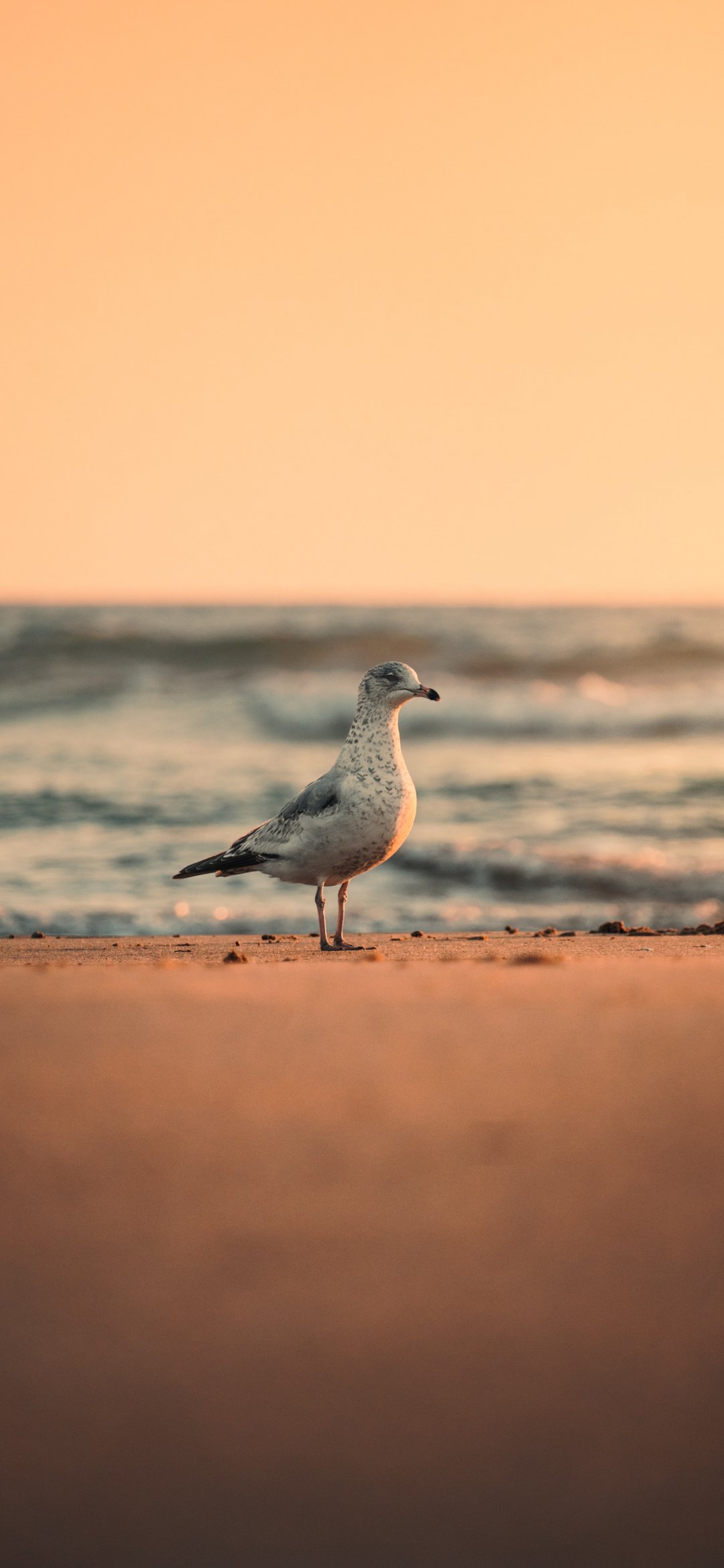 Wallpaper: sea, seagull, sunset - 1080x2340
