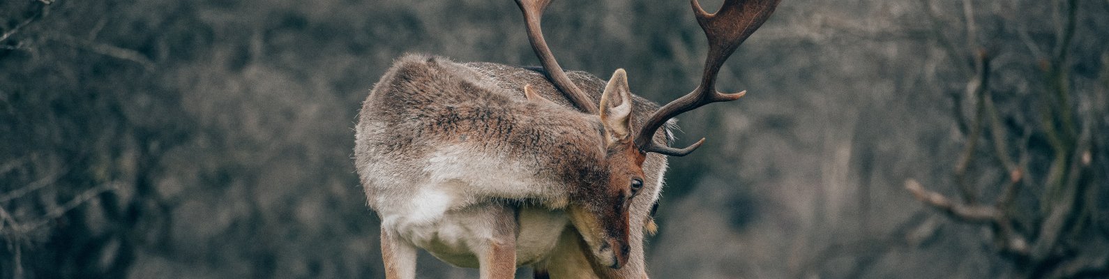 Wallpaper: Bentveld, The Netherlands, deer - 1590x400