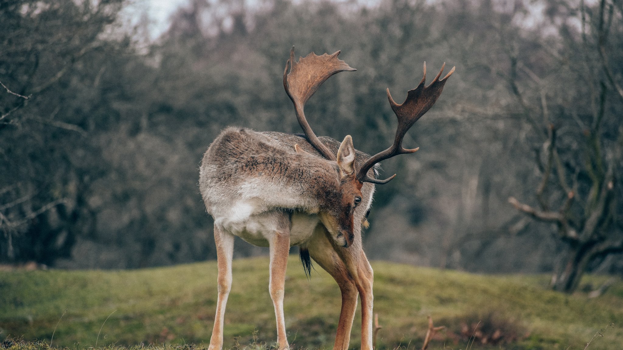 Wallpaper: Bentveld, The Netherlands, deer - 2048x1152