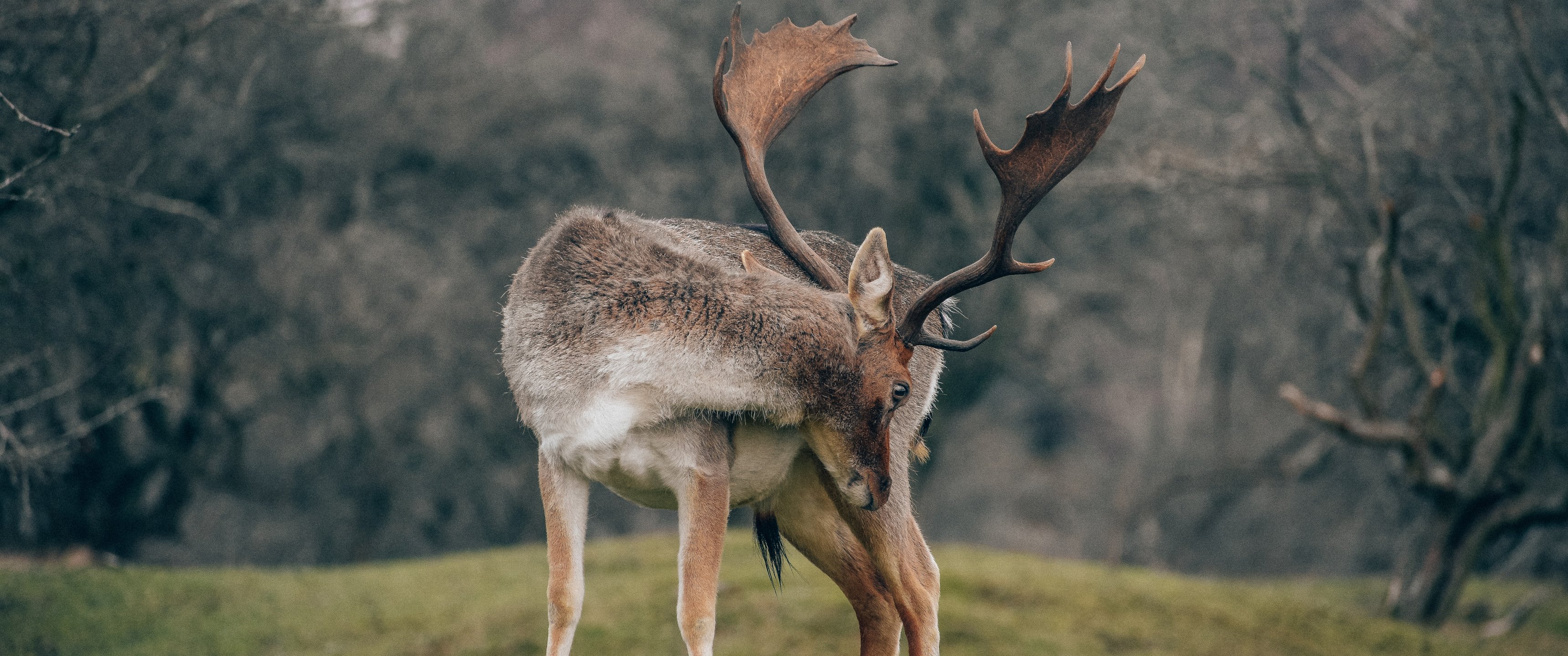 Wallpaper: Bentveld, The Netherlands, deer - 3440x1440