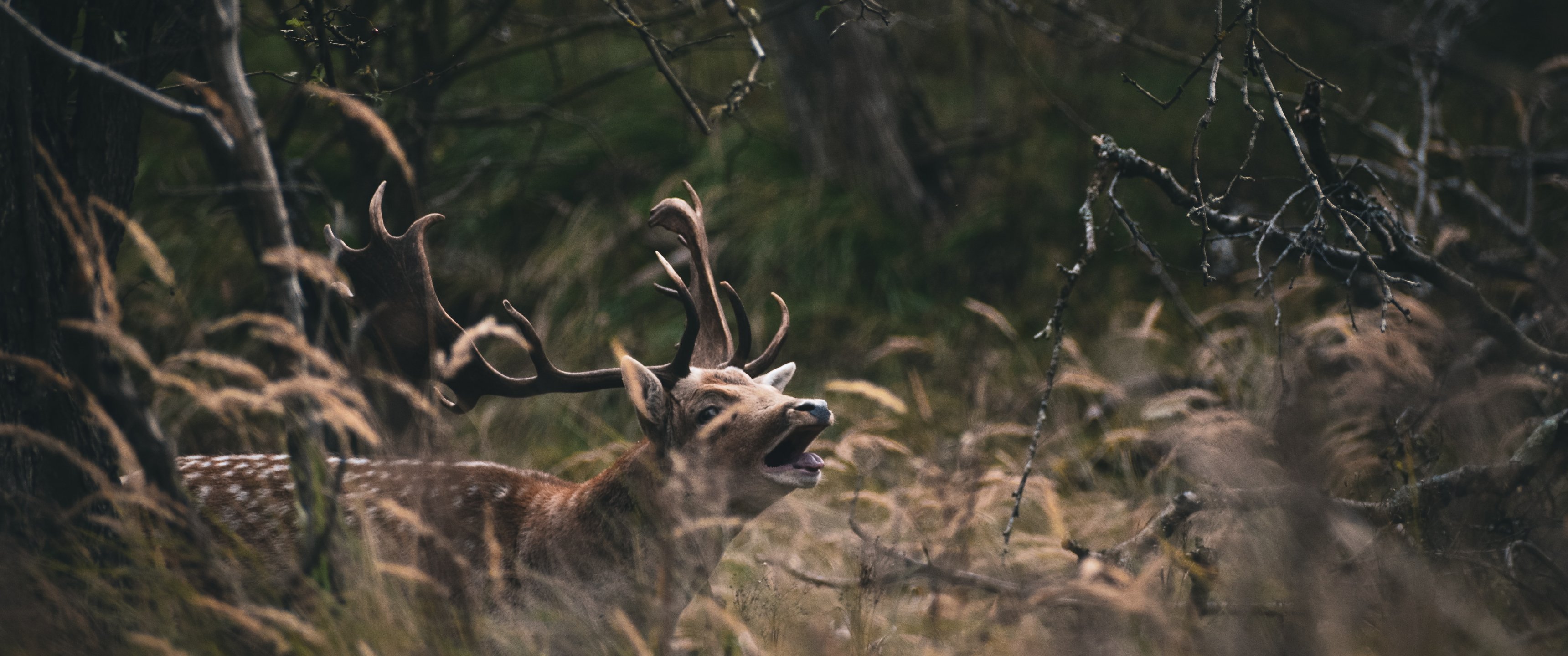 Wallpaper: Bentveld, The Netherlands, deer - 3440x1440