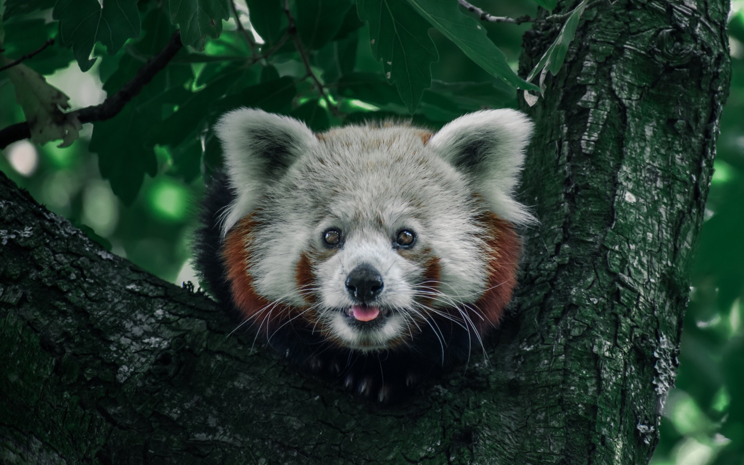 Wallpaper: red panda, on the tree, wild nature - 2560x1600