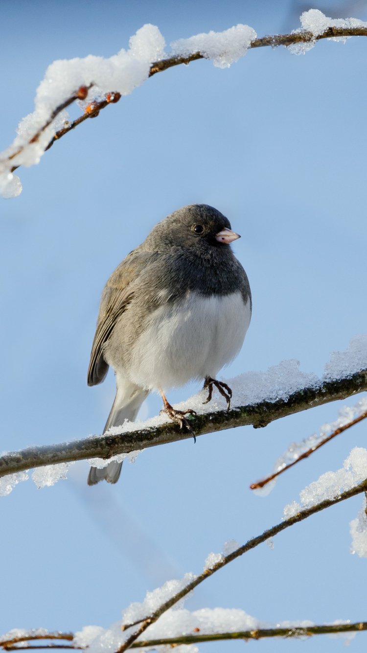 Wallpaper: bird, winter, on branch - 750x1334