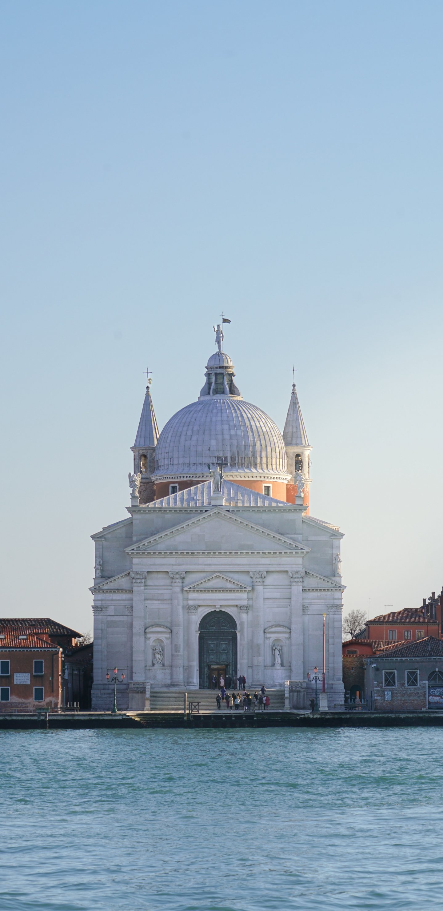 Wallpaper: city, temple, water surface - 1440x2960