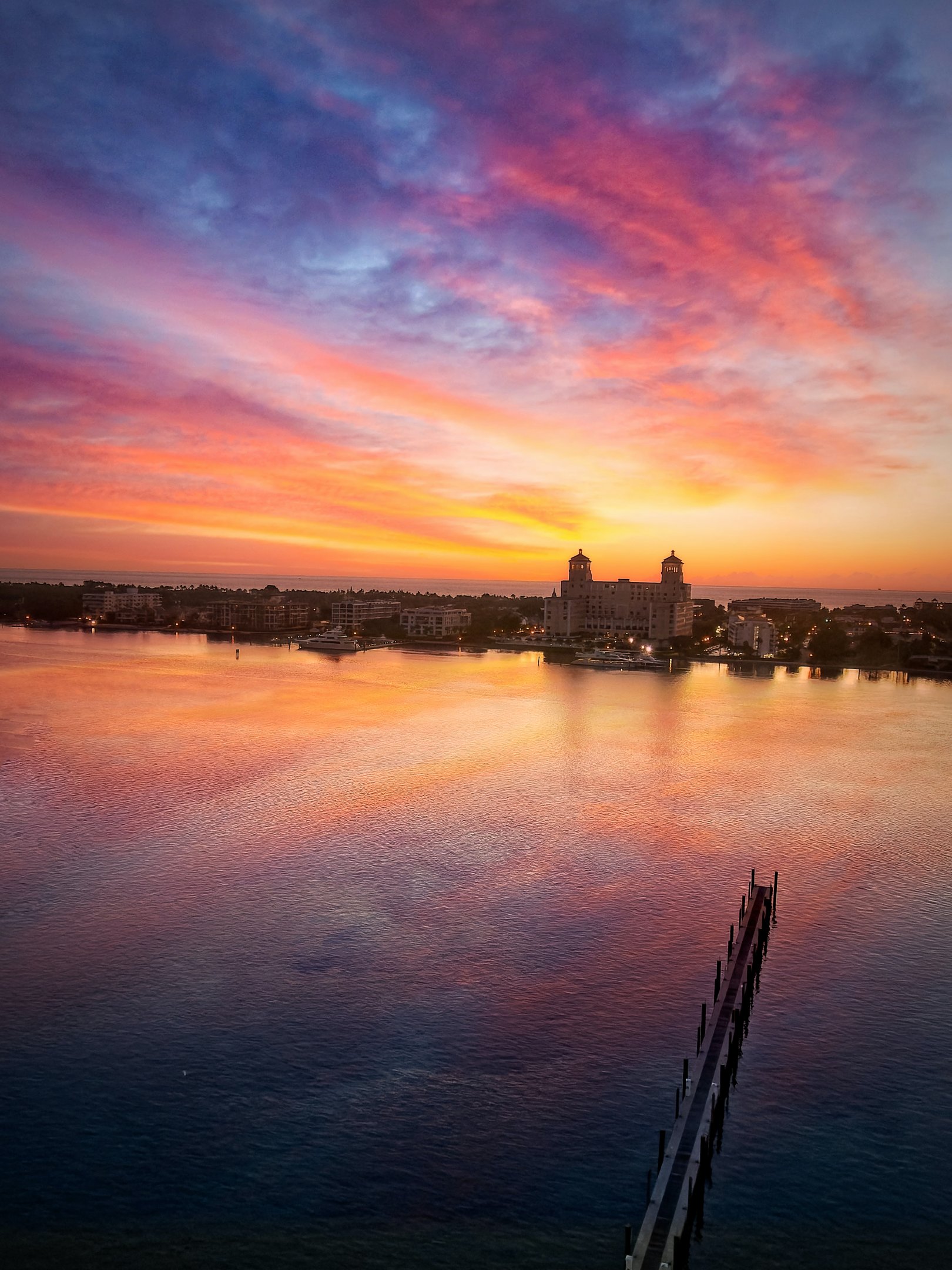 Wallpaper: sunset, dawn, city, water - 1620x2160