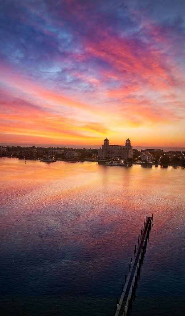 Wallpaper: sunset, dawn, city, water - 600x1024