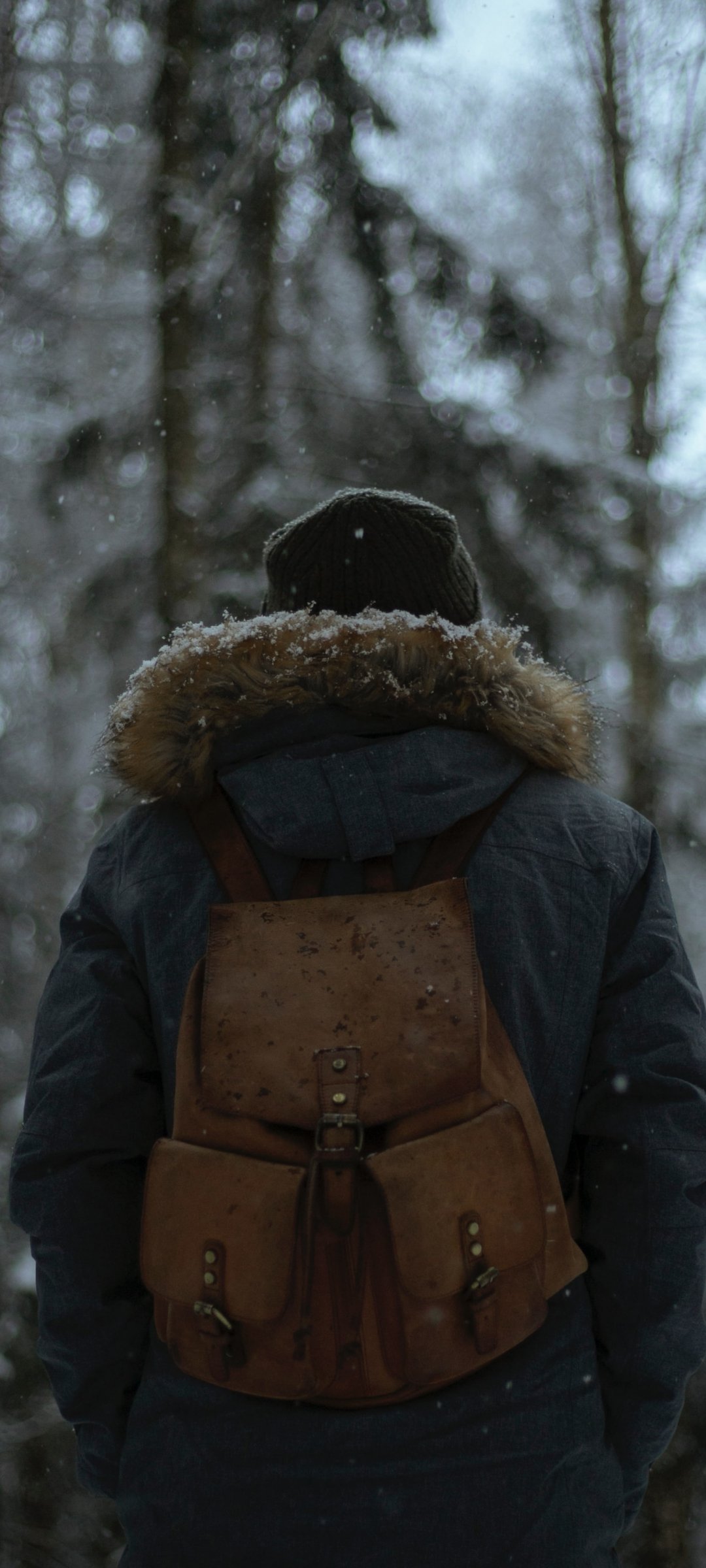 Wallpaper: cold, winter forest, snow is falling - 1080x2400