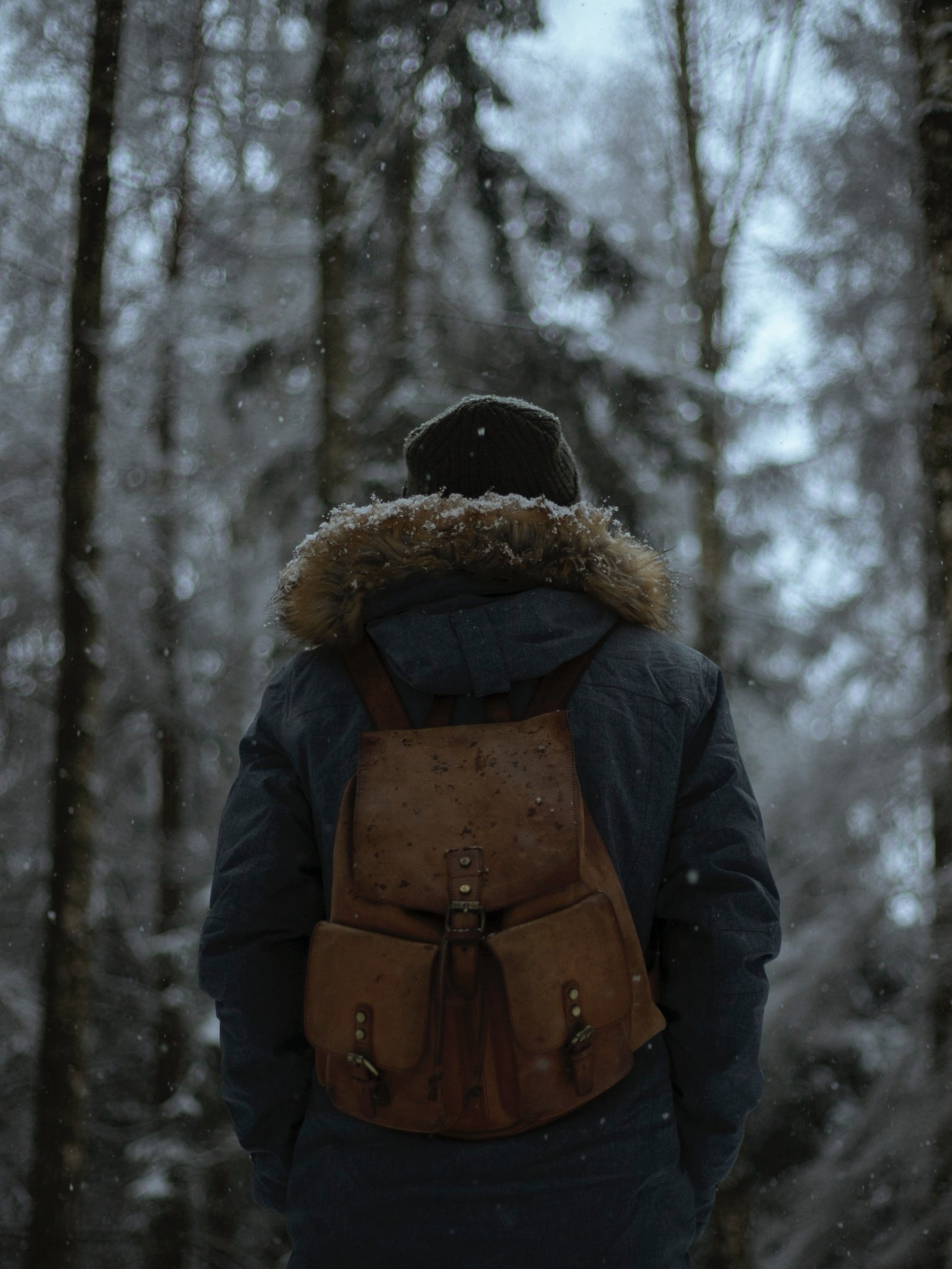 Wallpaper: cold, winter forest, snow is falling - 1620x2160