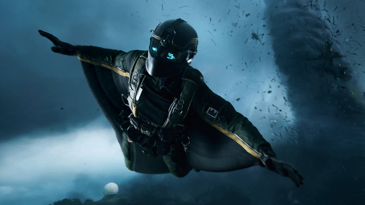 Wallpaper: Battlefield 2042, tornado, wingsuit - 1280x720