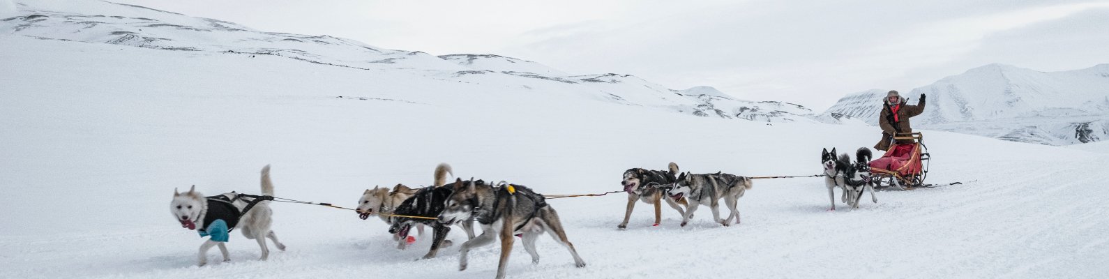 Wallpaper: Svalbard, Alaska, dog sled - 1590x400