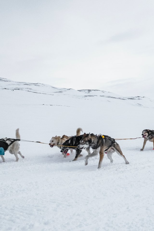 Wallpaper: Svalbard, Alaska, dog sled - 640x960