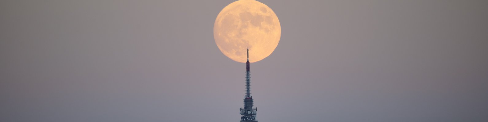Wallpaper: moon over the city, full moon - 1590x400
