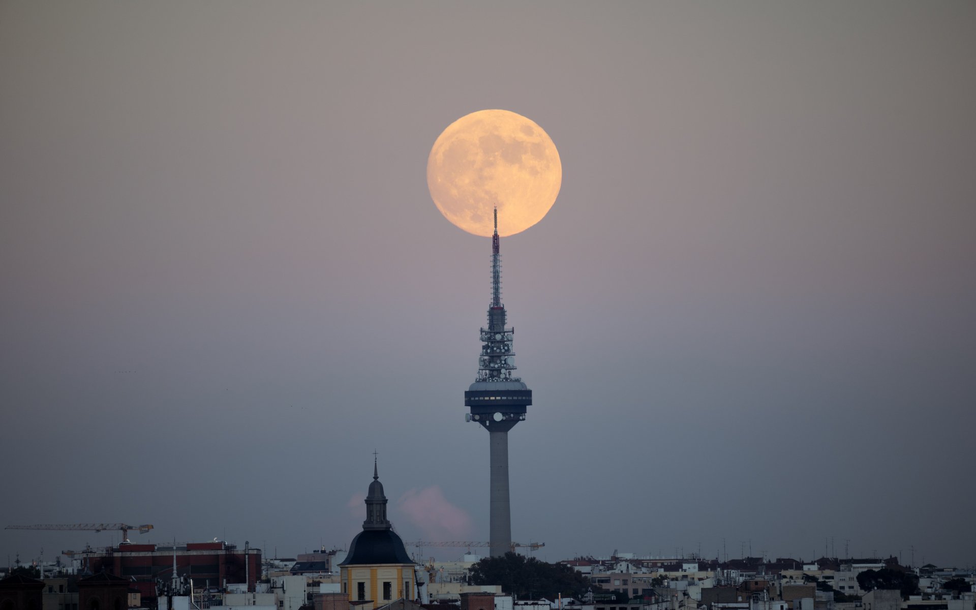 Wallpaper: moon over the city, full moon - 1920x1200