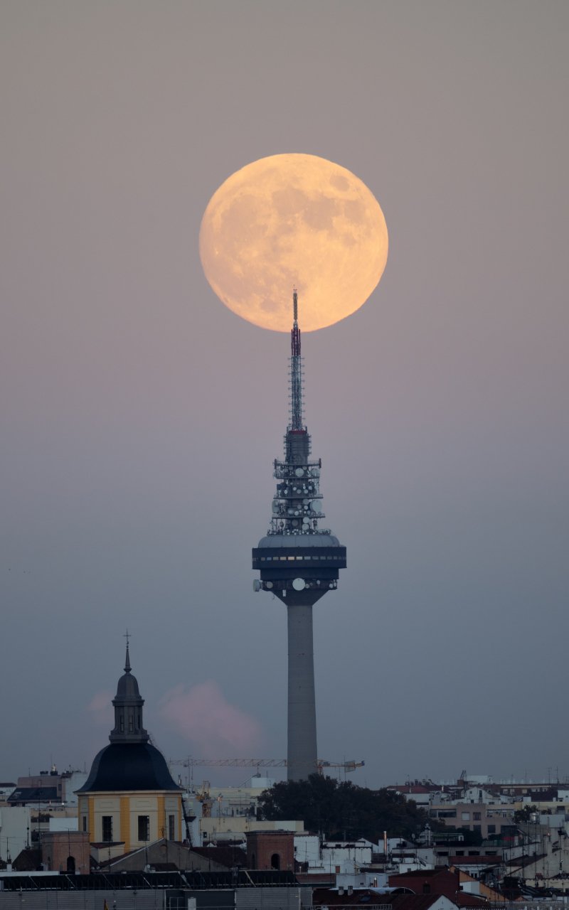 Wallpaper: moon over the city, full moon - 800x1280